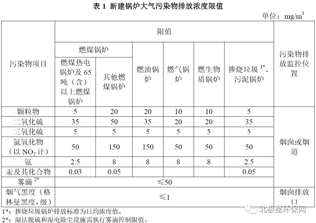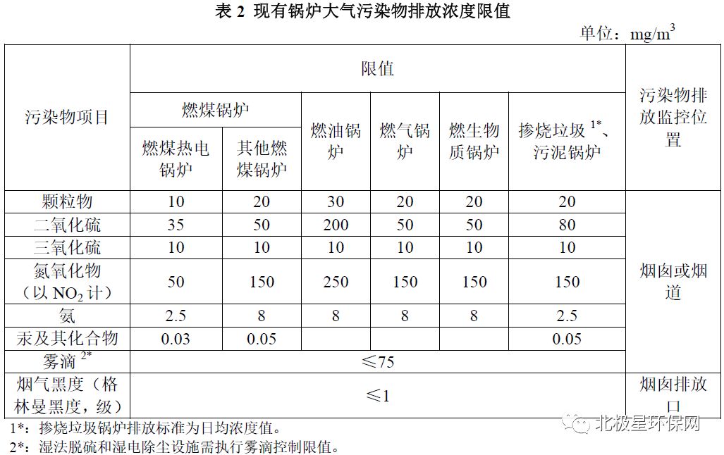 各类锅炉雾滴限值为≤50mg/m3;